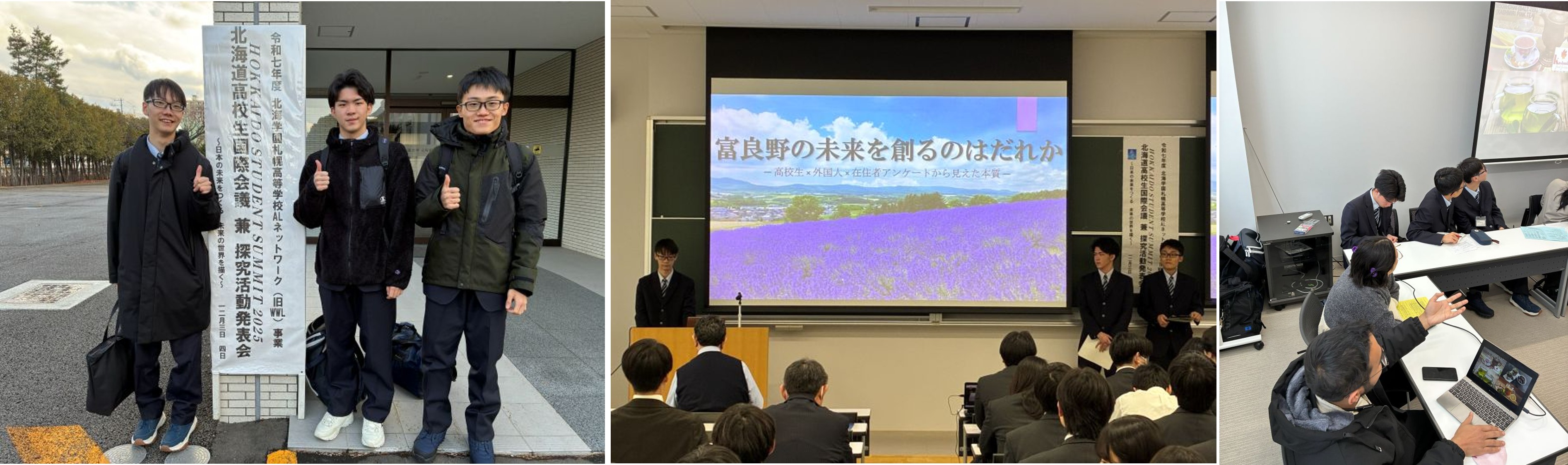 12月3日~4日、HOKKAIDO STUDENT SUMMIT 2025 北海道高校生国際会議 兼 探究活動発表会 Advanced Learning ネットワーク(旧WWLコンソーシアム構築支援事業) ~未来の日本を語る 未来の世界を描く~(主催:学校法人北海学園 北海学園札幌高等学校 協力:北海道大学大学院地球環境科学院)に、本校生徒3名が参加しました。
