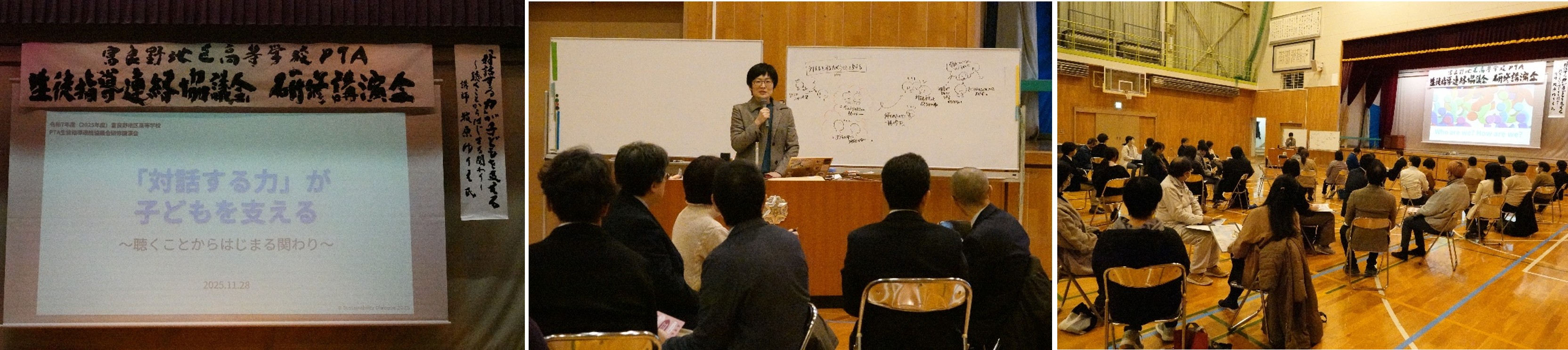 11月28日(金)富良野地区高等学校PTA生徒指導連絡協議会研修講演会が開催されました。今年度は講師にサステナビリティ・ダイアログ代表理事の牧原ゆりえ様をお迎えし、「対話する力が子どもを支える」という演題のもと、牧原様の常に前向きな言葉に引き込まれながら、「対話」の大切さを学びました。