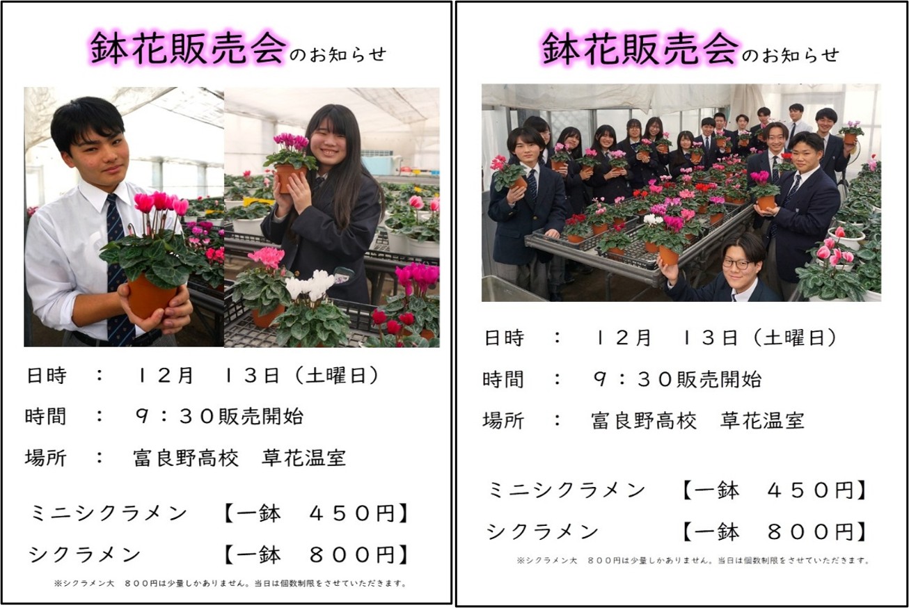 12月13日(土)、園芸科学科3年次「草花」の授業の一環として、富良野高校草花温室において「鉢花販売会」を行います。