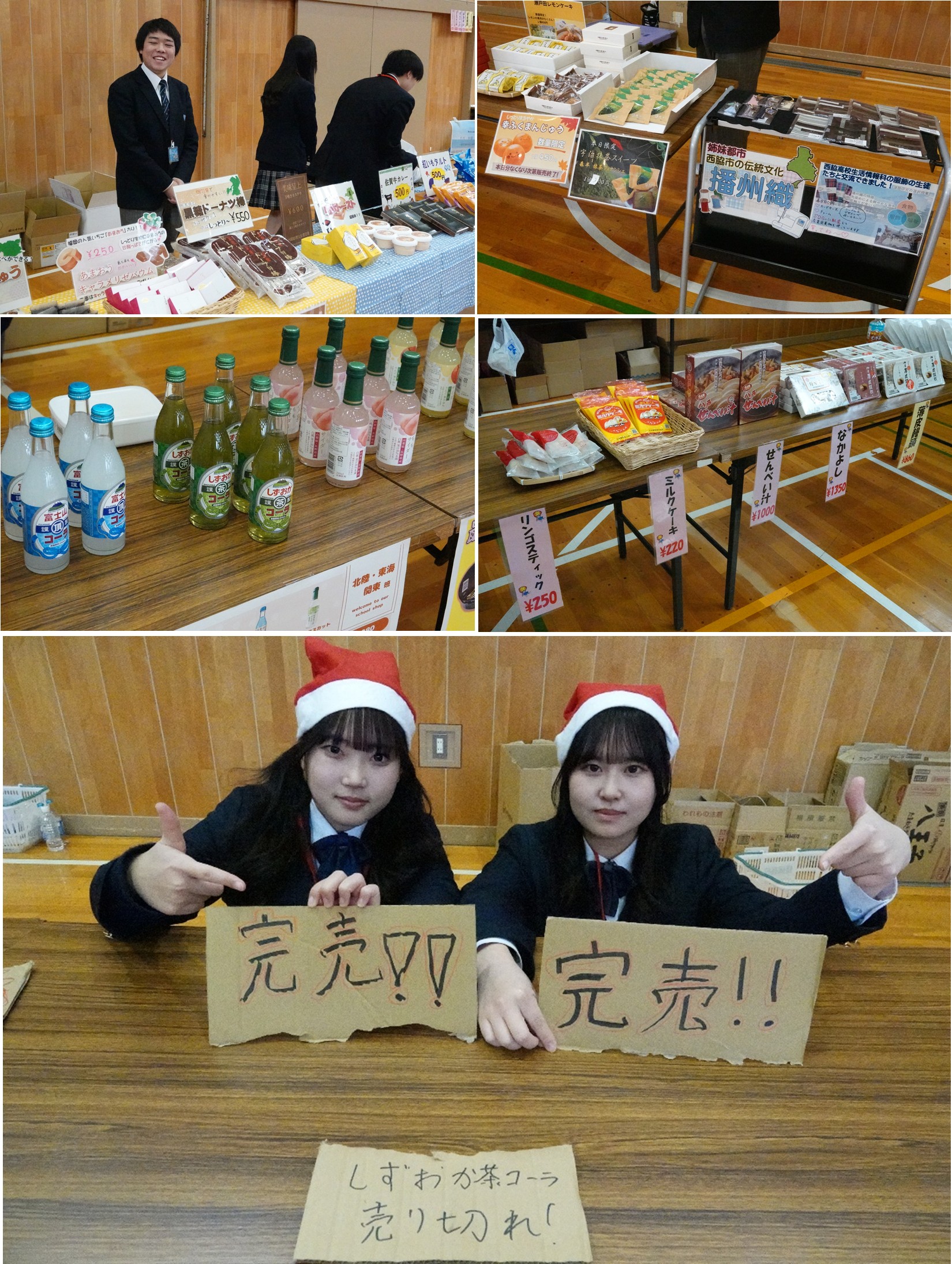 12月18日、総合ビジネス科3年次の授業「総合実践」の一環として、本校体育館において「富良野SHOP HAPPY MARKET」を開催しました。 今回は北海道・東北、近畿・中国、北陸・東海、九州・四国・沖縄の4グループをつくり、菓子を中心に各地のお土産を仕入れ、販売しました。終了時間前に完売する商品もあり、ご希望がありながらご購入いただけなかった来場客の皆様には大変ご迷惑をおかけしました。