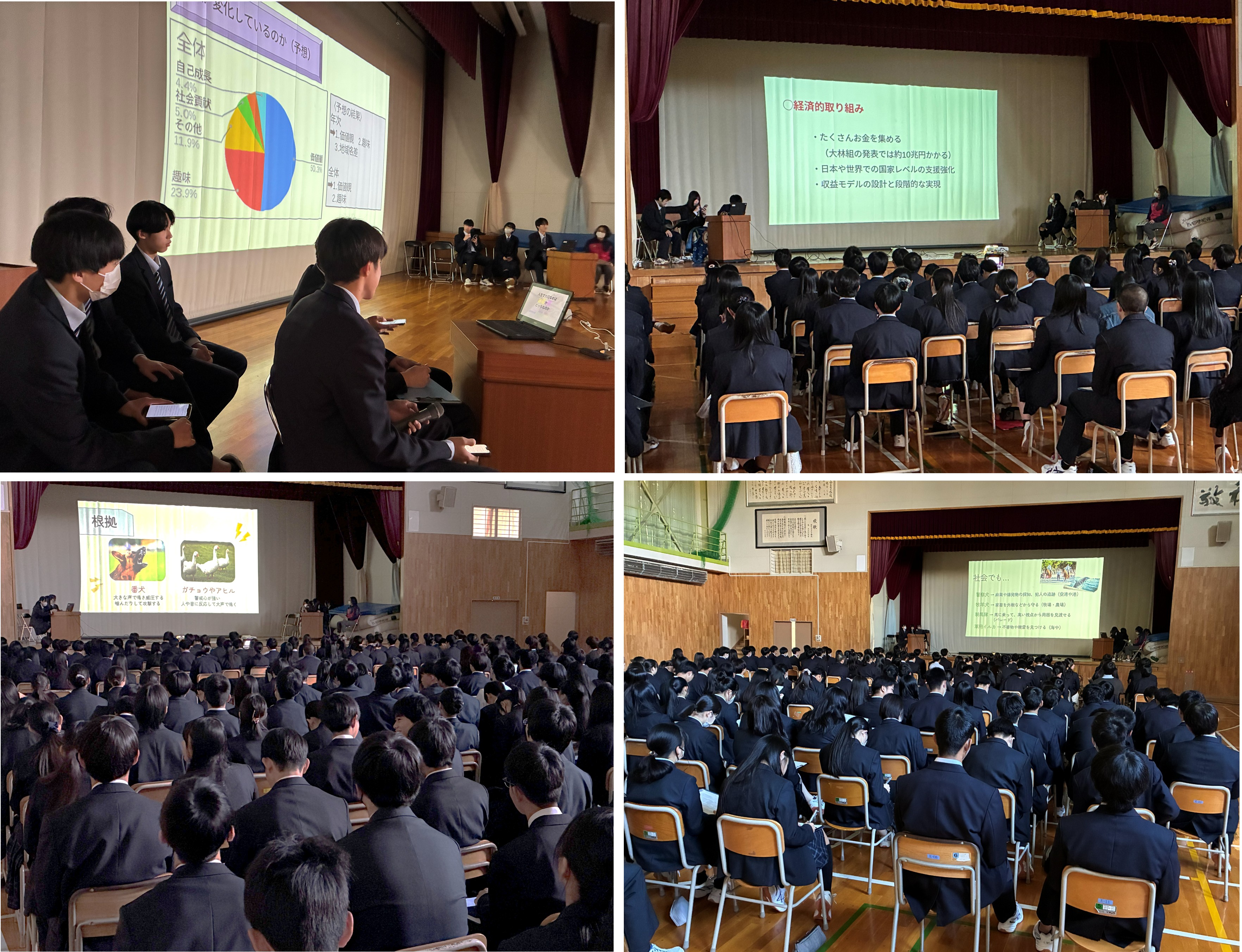 発表後、生徒たちからは「異なる視点を学ぶことに繋がった」「新しい自分と出会った気がした」「班員と協力する楽しさや大変さを学んだ」「同じテーマを掲げて活動していても最終的に個人個人で意見が異なることがわかった」といった感想が出ました。