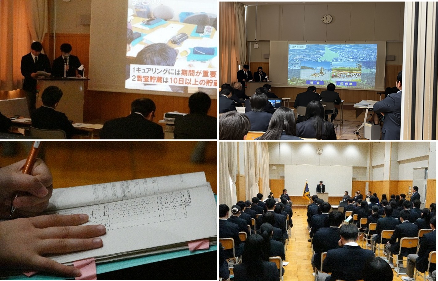 12月17日(水)、園芸観光デザイン科・園芸科学科による校内実績発表大会が開催されました。この大会は、各研究グループ(専攻班)が1年間かけて取り組んだプロジェクト学習の成果を発表し合い、記録、内容、発表を総合的に審査し、順位を決定します。最優秀賞に選ばれた発表班は、学校代表として令和8年度北北海道農業クラブ実績発表大会に出場します。