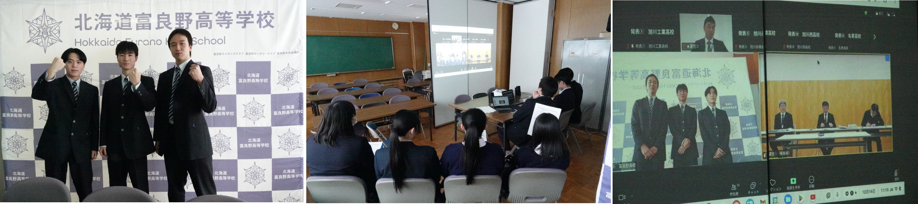 12月16日、「tan-fest in 上川管内」において、3年次の総合的な探究の時間での探究活動の取組を代表して、「人が嘘をつく瞬間を見抜きたい!」(鈴木さん、由利さん、中山さん)を発表しました。