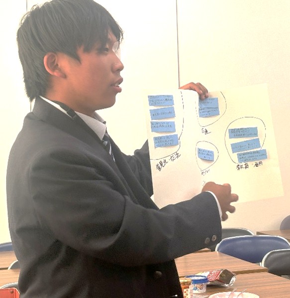 FCL代表/チーフクリエイターの高橋健心くんの挨拶から始まり、それぞれの自己紹介、そしてFCLビジュアルデザイナーの富樫苺禾さんからFCLロゴデザインの発表、執行部3名によるFCLのスライド発表が行われました。その後グループに分かれて、「10年後の富良野市に期待すること」と題してのアイスブレイクを実施、交流を深めました。今後は地域と連携しながら、富良野市の魅力発信や富良野高校の生徒募集に貢献できるような活動をしていきたいと考えています。