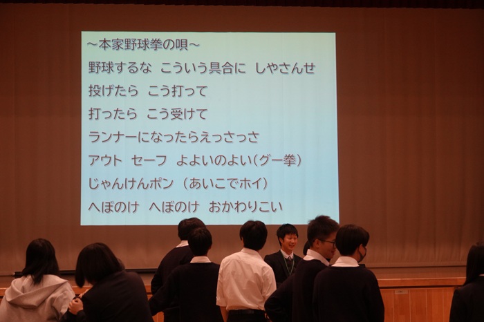 挨拶を交わした後、アイスブレイクでは本場の野球拳を行い、笑いと歓声が上がる中、お互いの緊張をほぐしました。続いて、各校の代表生徒が高校および学科の取り組みについて、スライドを使って紹介しました。