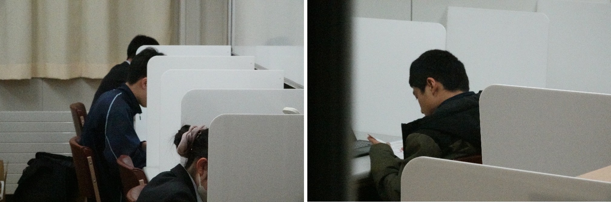放課後の自習室、廊下・・・3年次生が大学合格、公務員試験合格に向かって一所懸命頑張っています!同じ目標に向かう同士が、情報交換や教え合う姿が毎日見られます。教員に教えを請うている姿も見られます。ガンバレ!富高生!