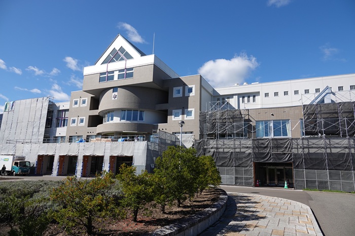 サナギから孵化するかのように、校舎を覆っていた工事用の幕が少しずつ取れていってます。