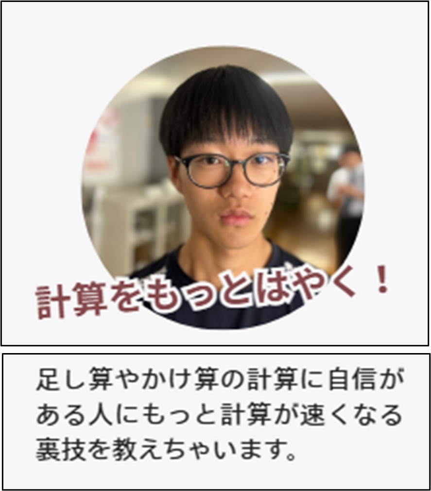 10月3日(金)、学習チューターとして、扇山小学校の算数の授業に高校生を派遣しました。授業の前半は、算数の授業を個別にサポートをし、後半は、高校生が各々準備した算数教材を小学生に説明しました。