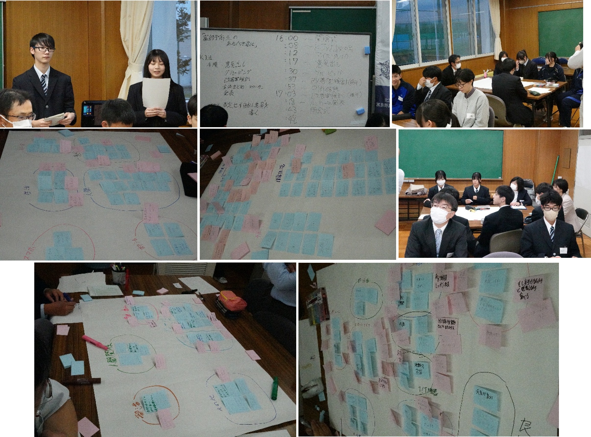 生徒会長、PTA会長、学校長から挨拶があり、その後三者が8班に分かれて、「富良野高生のあるべき姿とは」をテーマに、KJ法を用いて討論が行われました。どこの班も同じようなことが話題としてあがり、それを改善していくことが、よりよい富良野高校、富良野高生としてあるべき姿に近づくのではないかと話され、発表されました。