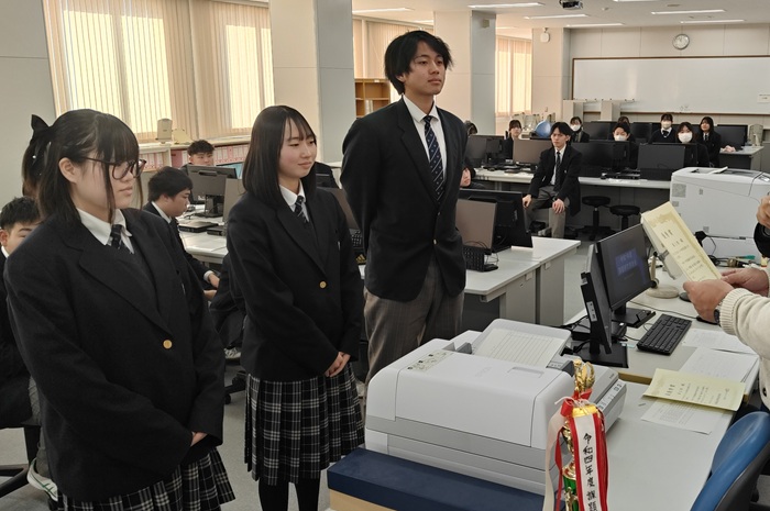 11月13日(木)、本校校長室にて「税に関する高校生の作文」の表彰式がおこなわれ、富良野税務署長の土田様から表彰状と副賞が授与されました。税の作文への取り組みは、2年次全学科「公共」の授業の一環として毎年行っています。