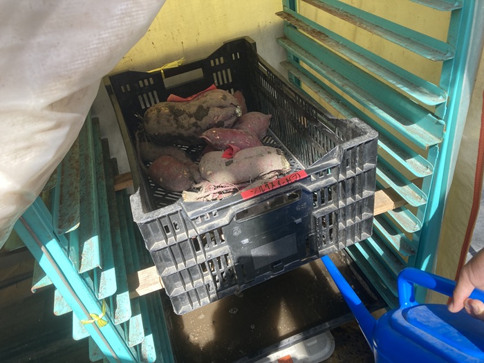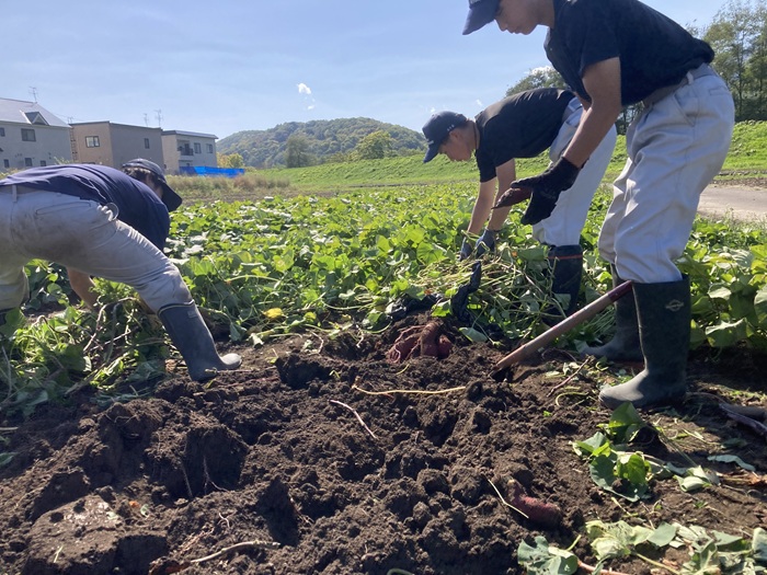今年もサツマイモの収穫がはじまりました。本校ではシルクスイートと紅はるかの二種類を育てています。成沢修斗さん(2年次)は「今年の出来はいい」と満足そうに話してくれました。サツマイモは収穫後、36度、湿度90%以上の環境で3~4日間保管する(キュアリング)という手間を加えることで長期保存が可能になります。冬期には、雪室に入れることで糖度が上がるのか、という研究も予定されています。
