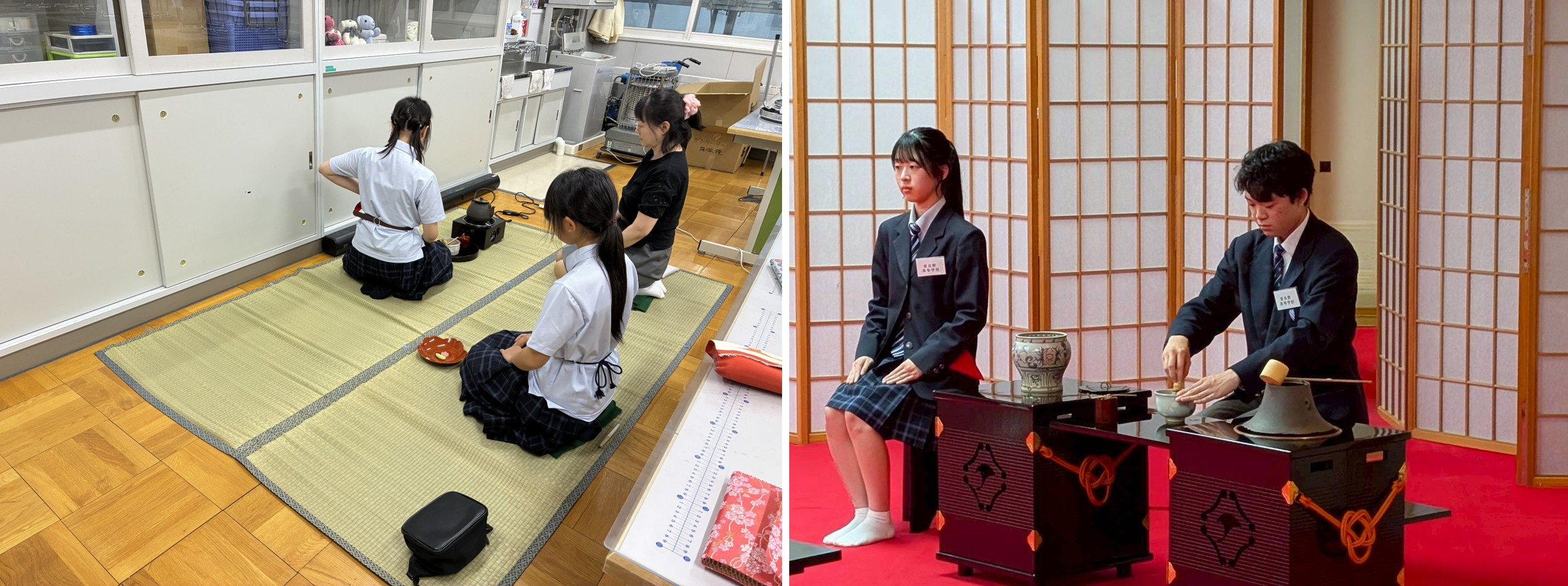 《主な活動》 新入生歓迎茶会、学校祭茶席、茶道研修会、国際交流茶席 など